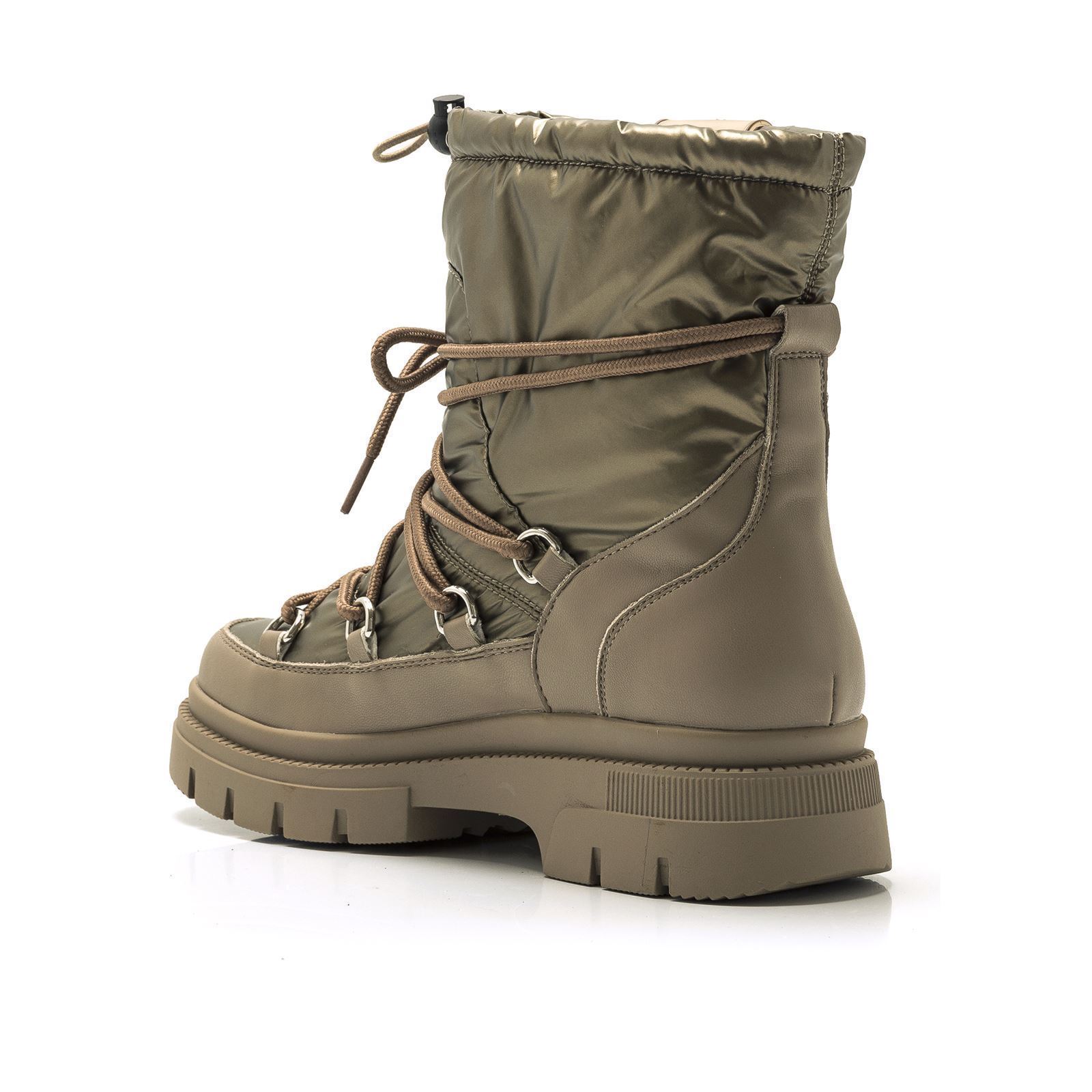 Botín plano Mirte Mustang para mujer. Modelo de tendencia inspirado en el estilo apreski de color taupe. Destaca especialmente gracias a su acolchado y cierre de cuerdas. Piso dentado con horma redondeada. Etiqueta con el logo de la marca en la parte superior de la caña. Le dará un toque de originalidad a tus looks.