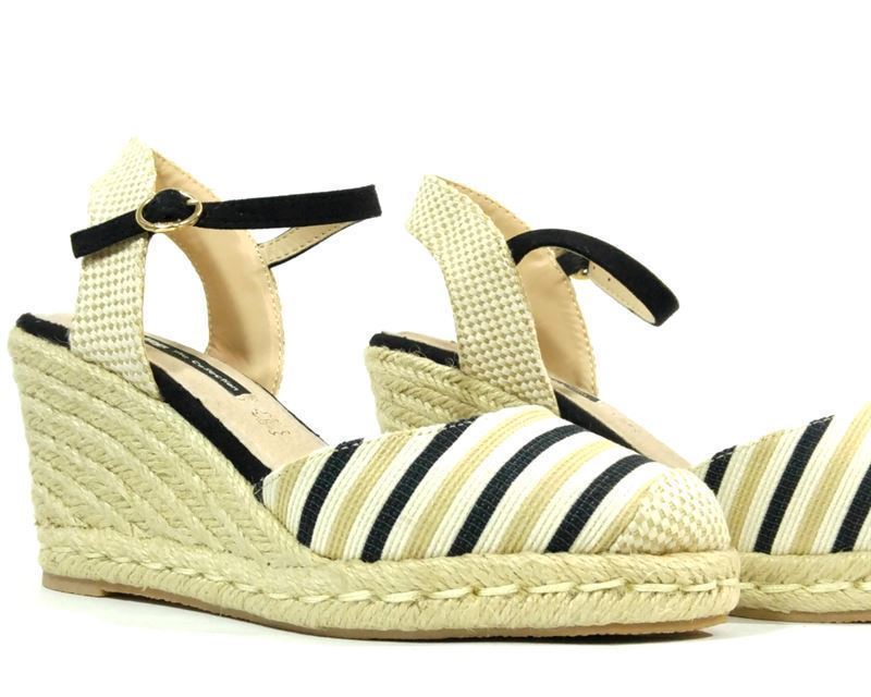 Sandalias de esparto con rayas en negro y amarillo para chica de la marca española Mustang