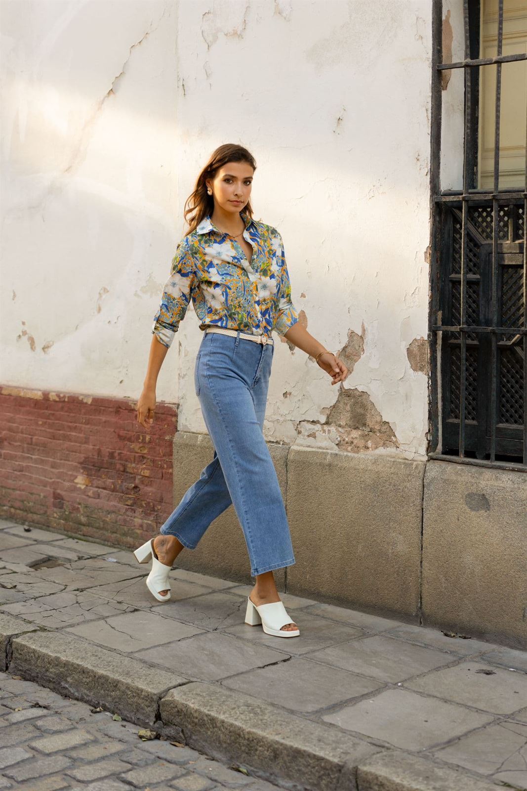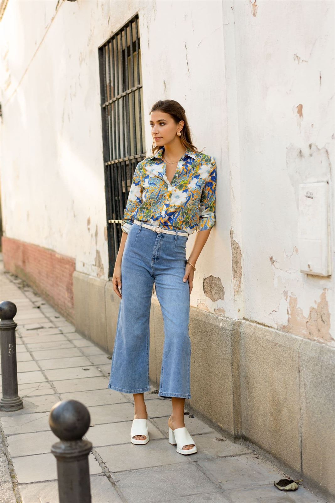 Pantalón tipo tejano de corte ancho con cinturón con hebilla de corazón. Perfecto para tus looks primaverales.